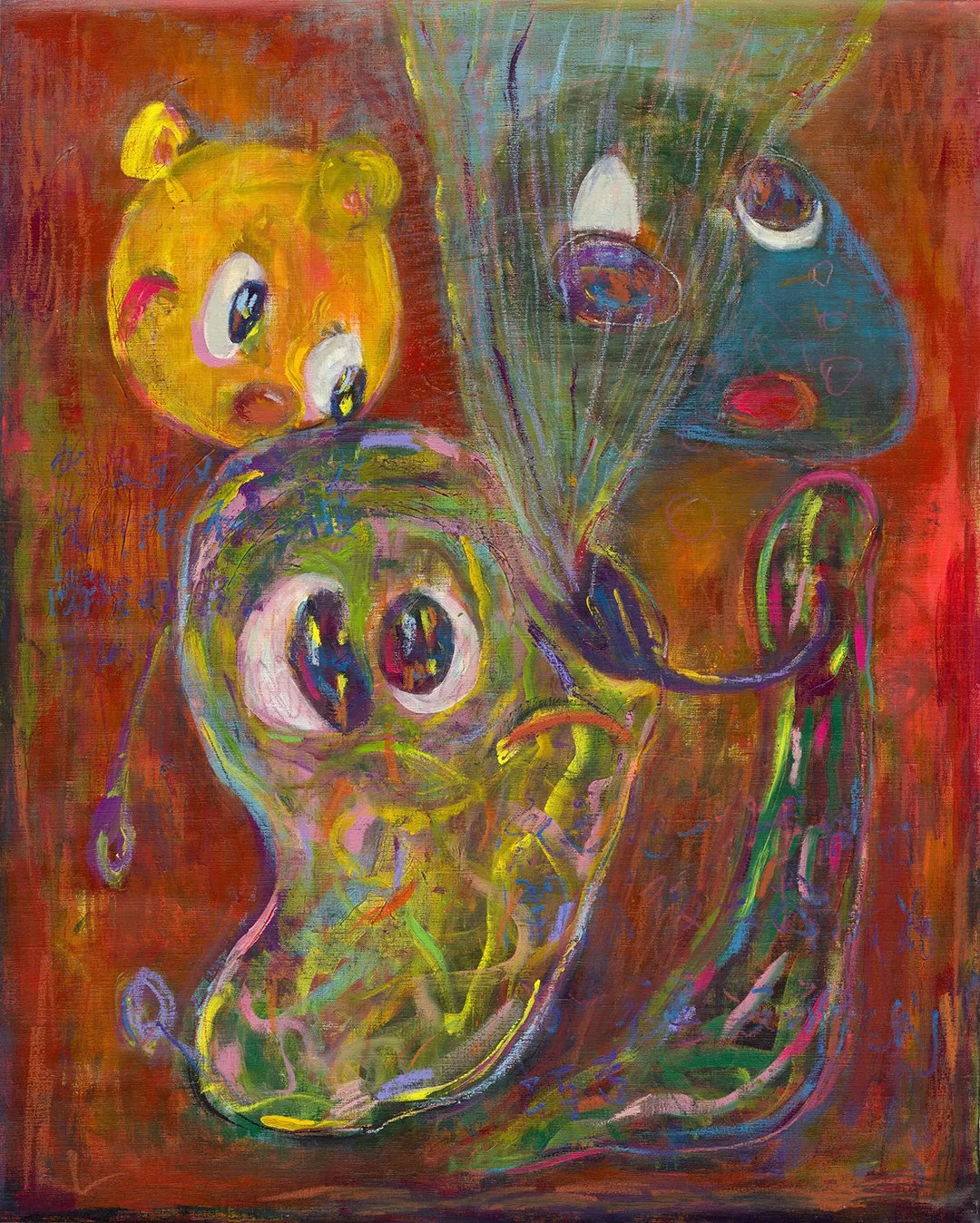 For the artist, a constant in his work is the reflection 'What is painting?'. For his it is a way of communication in which he constantly deconstructs and constructs his thoughts. These thoughts take him to the moment of her childhood, when he watched television, or played alone with toys. His images evoke words or poems. Perhaps, this kind of childhood experience is common in the era of declining birth rate, and some might share the same feeling: the desire to be with someone and grow up without noticing the desire.