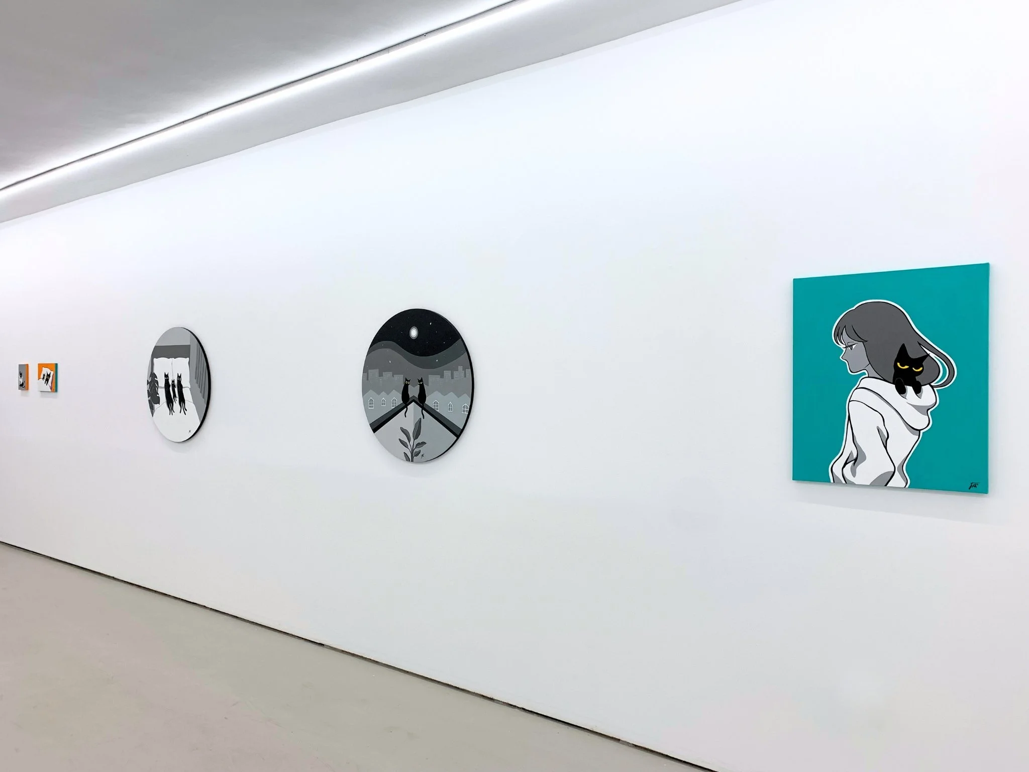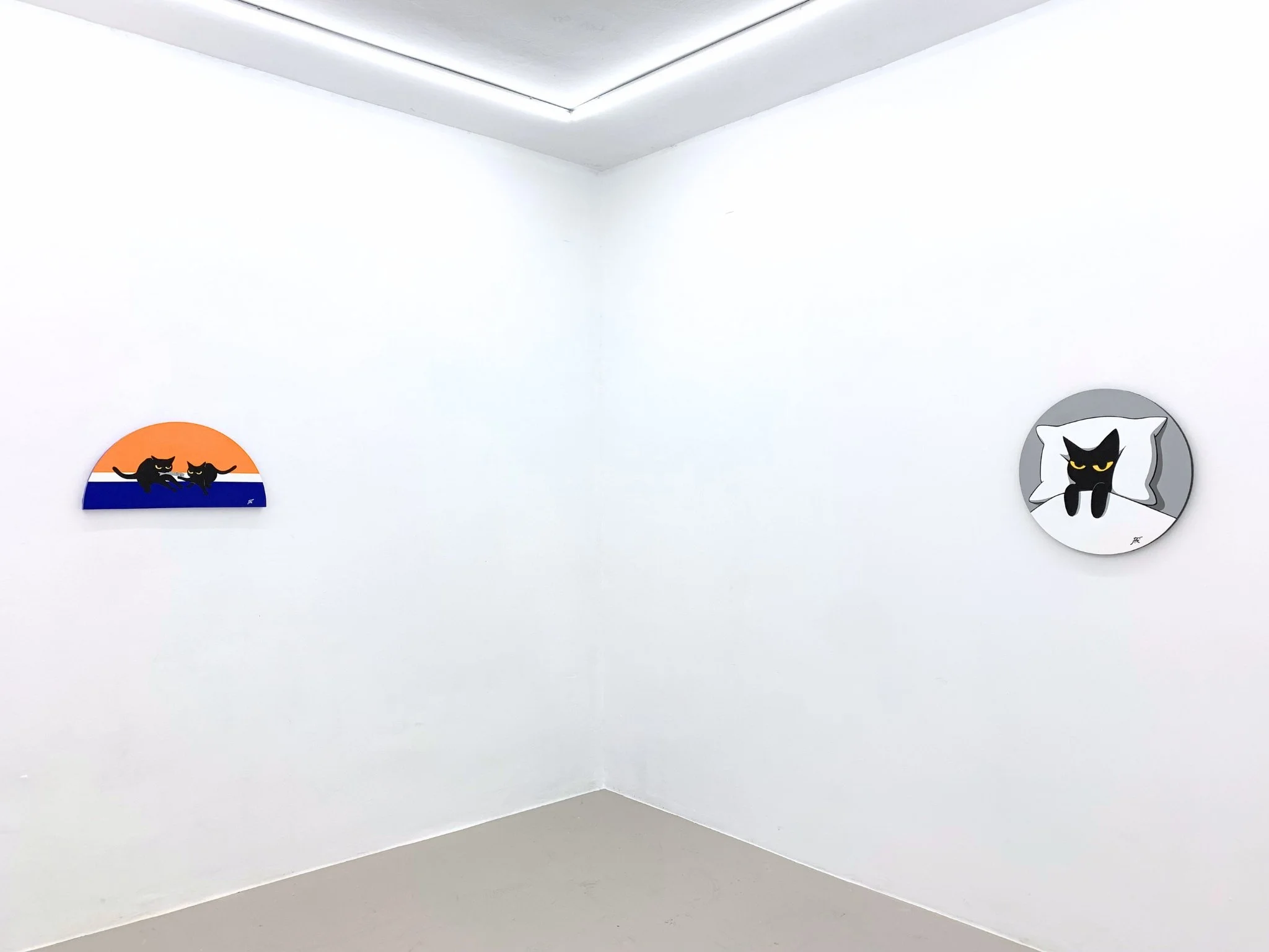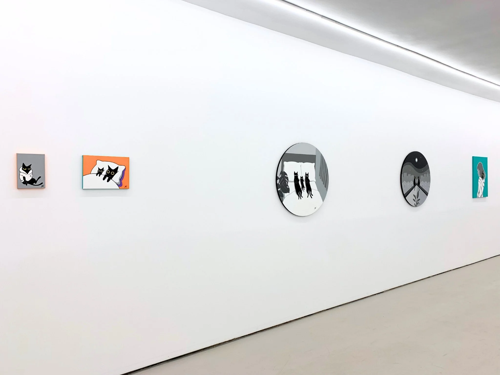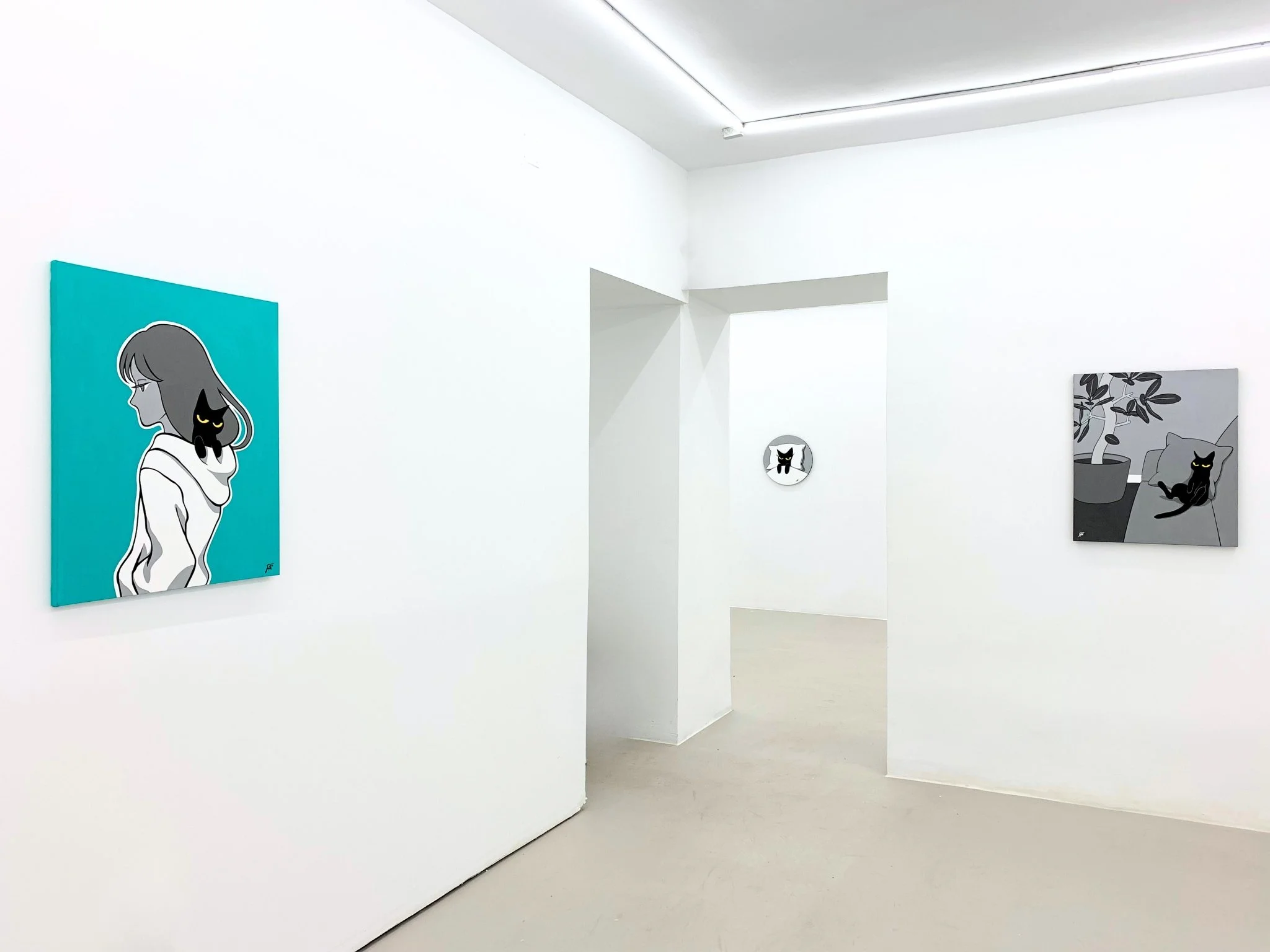 “…I draw a world of black cats that reflects my thoughts. Keeping sensibility, the black cat appears everywhere, and is finished with a story”, states the artist.